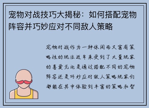 《春明门攻略:全方位解读如何轻松击败敌人并掌握战场优势的策略与技巧》是一篇深入探讨如何在春明门这一战役中获得胜利的详细攻略。本文将从多个维度解析这场战斗的关键要素,帮助玩家理解如何在不同的情境中做出正确的决策,通过合理的战术布局与操作技巧,不仅打败敌人,还能迅速掌握战场优势。攻略内容将从四个主要方面...